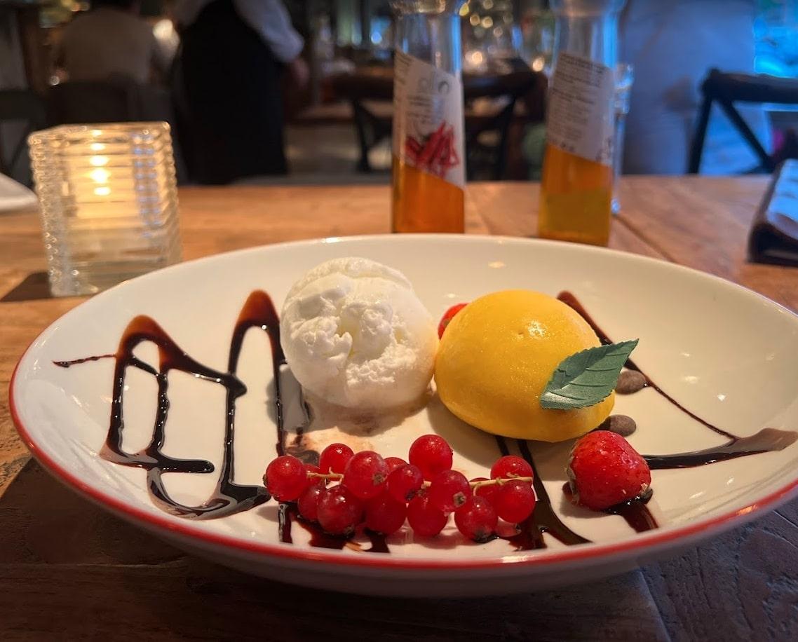 The restaurant stands out for its warm and rustic ambiance, featuring natural materials such as wood and exposed brick, reminiscent of traditional Italian trattorias. The interiors are well-maintained and inviting, ideal for an intimate dinner or a casual lunch with friends. The atmosphere is enhanced by warm lighting and well-organized spaces. The staff is known for their professionalism and courtesy, offering attentive service and catering to every need.