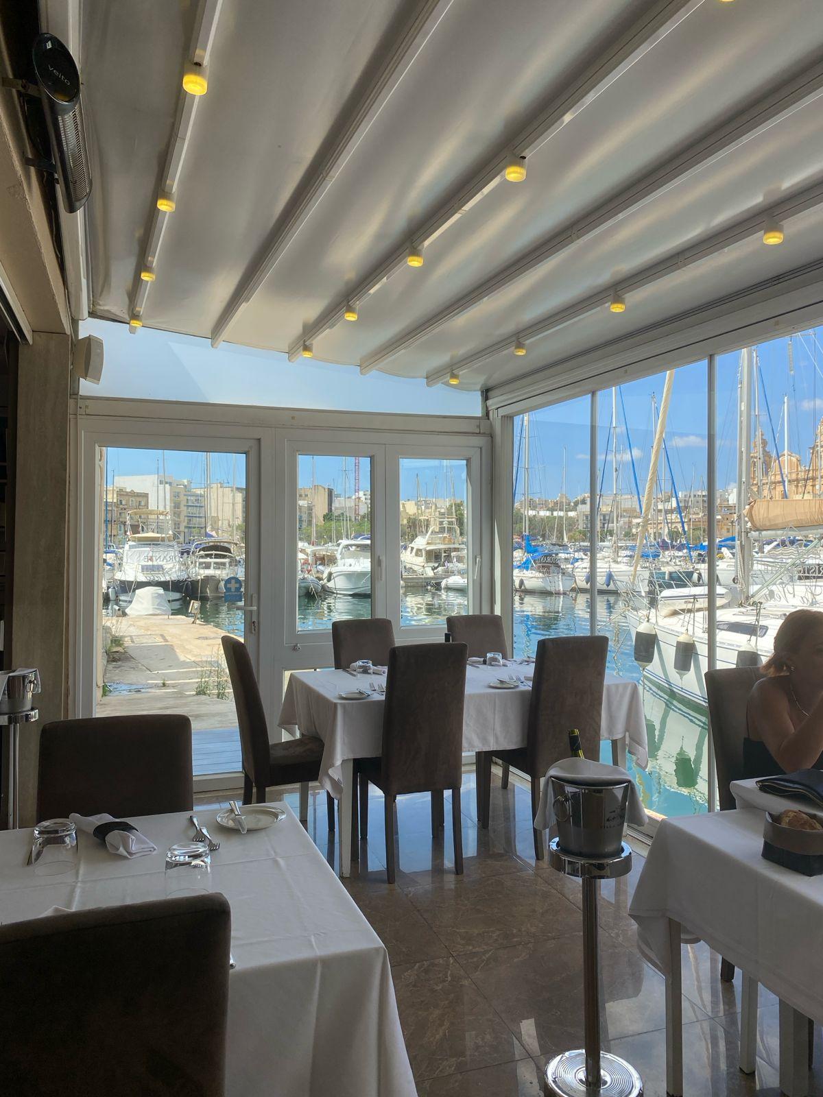 The restaurant is located right by the sea, in the marina area, with a panoramic terrace. The facility is modern and cozy, very well maintained, with bright and charming rooms. There are many decor elements, such as large wine cabinets and paintings, as well as fresh fish counters. Service is very fast and efficient, with special attention to customer needs. Prominent service the very fresh fish also displayed in plain view.