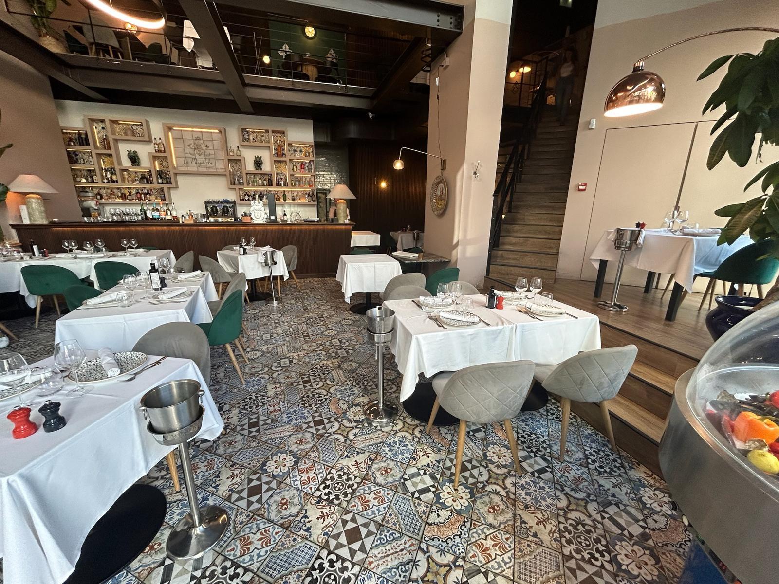 The restaurant is located in town, in the very center of St. Julians, a lively and touristy area. The facility is particularly new, well-kept and modern, with large, bright spaces, very high ceilings and fine finishes. The staff is very careful, efficient and fast. The standout feature is the well-maintained outdoor patio and the fine, elegant cuisine with quality raw materials.