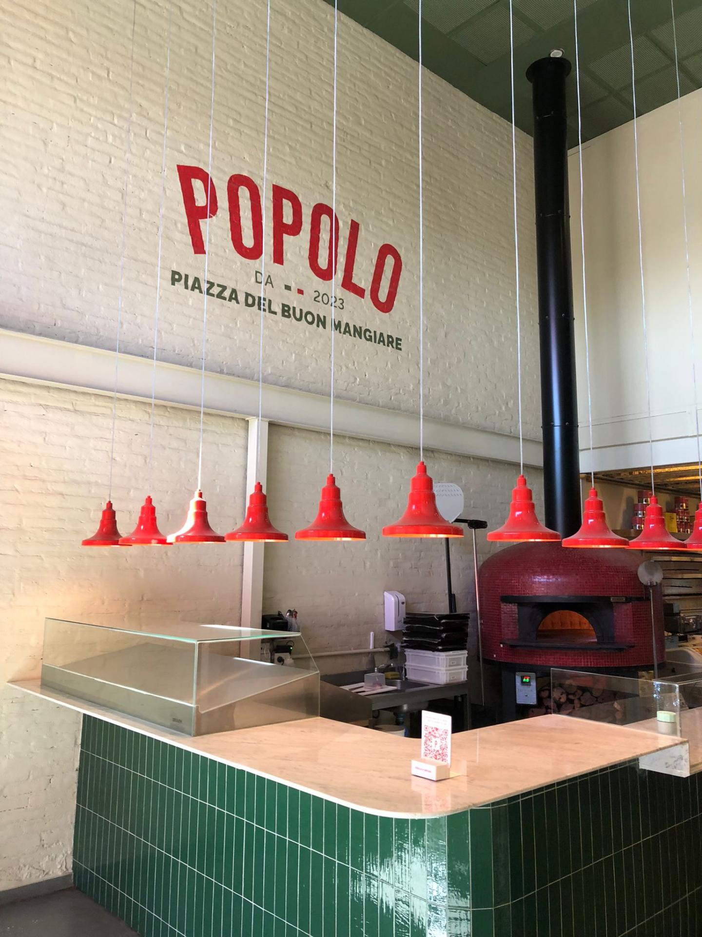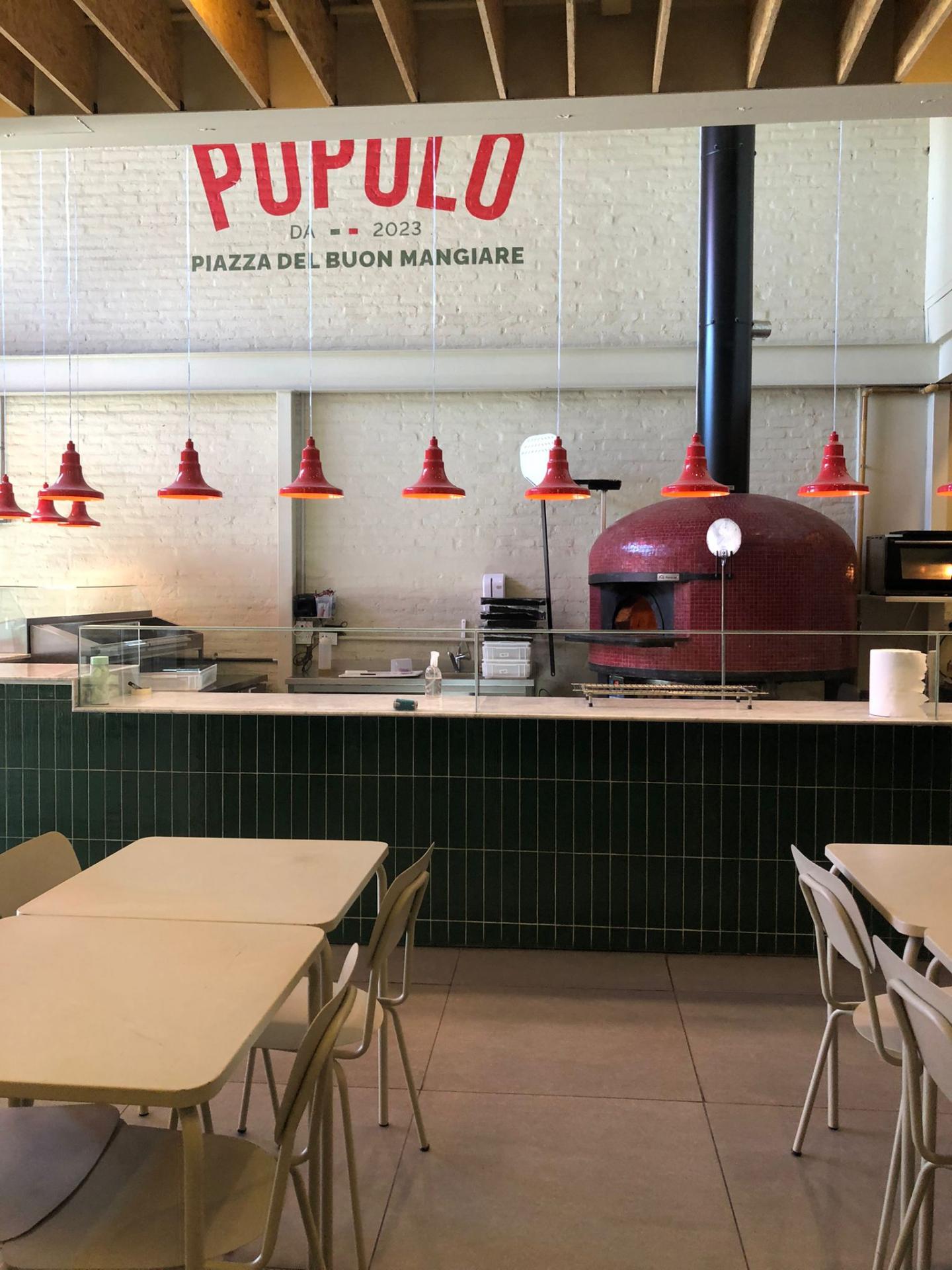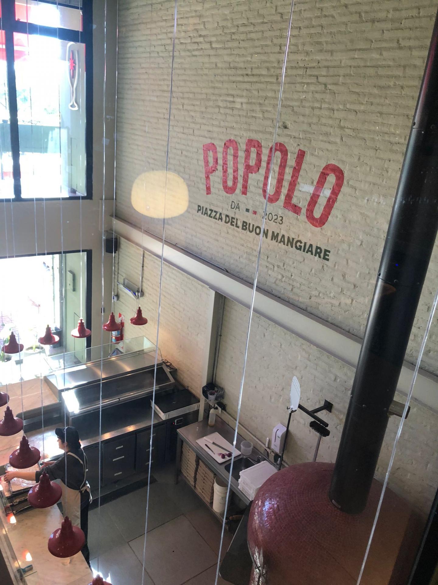 Popolo is a restaurant in the central area of Rosario. It is bright, spacious, and modern, consisting of two floors. The ground floor features an open kitchen with a counter for pizza and a display of products available for purchase and takeout, as well as a separate bar counter and seating areas. The upper floor is exclusively dedicated to dining tables, offering a slightly more elegant atmosphere with a glass view of the oven and preparation counter.