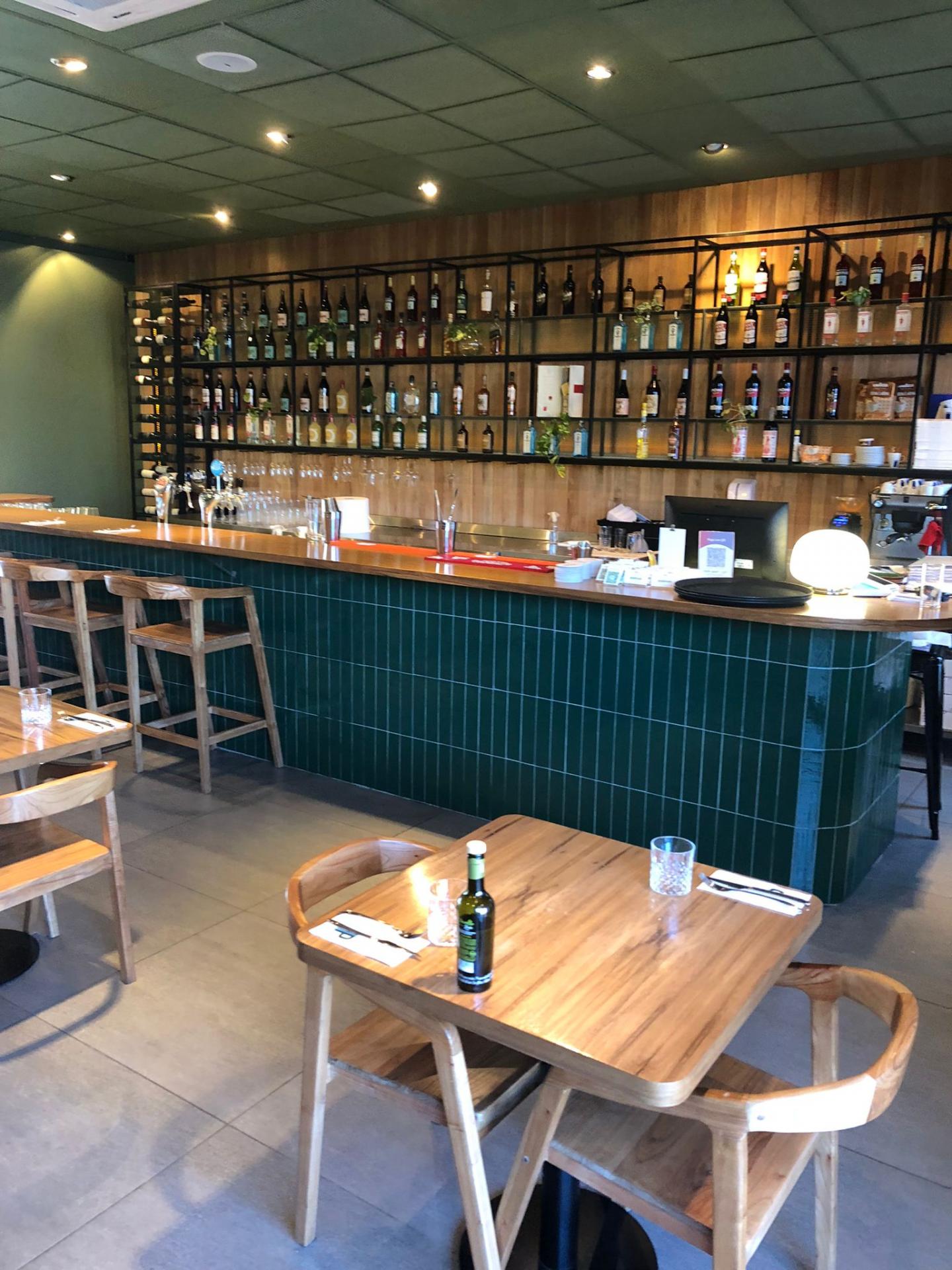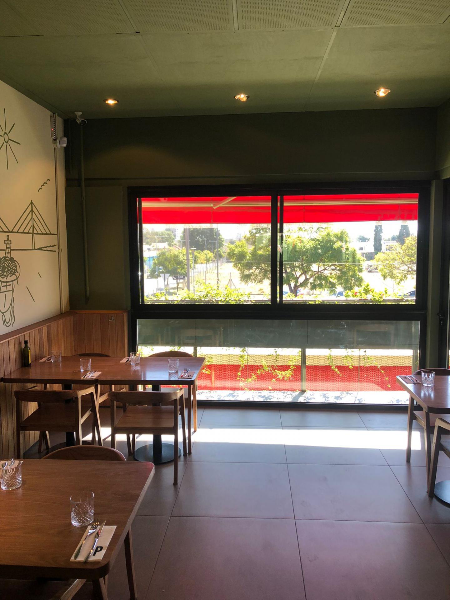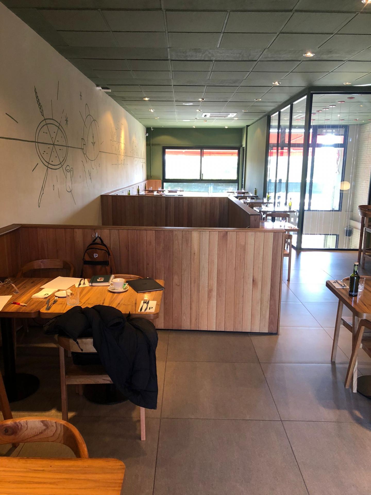 Popolo is a restaurant in the central area of Rosario. It is bright, spacious, and modern, consisting of two floors. The ground floor features an open kitchen with a counter for pizza and a display of products available for purchase and takeout, as well as a separate bar counter and seating areas. The upper floor is exclusively dedicated to dining tables, offering a slightly more elegant atmosphere with a glass view of the oven and preparation counter.
