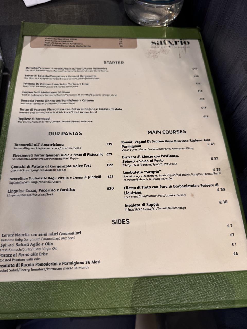 Satyrio offers a combination of hearty Italian food, a vast selection of fine wines and an exceptional service all in a relaxed atmosphere. Minutes away from Aldgate station, Satyrio is the perfect spot to take a break from the hectic and fast pace of the city.